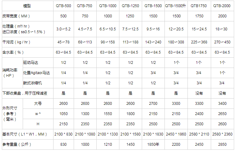 帶式壓濾機價格選擇型號: