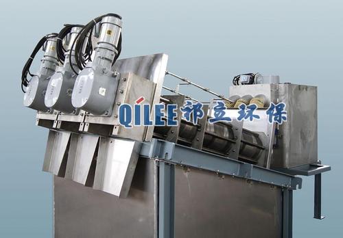 2.脫水:經(jīng)過濃縮的污泥隨著螺旋軸的轉(zhuǎn)動(dòng)不斷往前移動(dòng);沿泥餅出口方向,螺旋軸的螺距逐漸變小,環(huán)與環(huán)之間的間隙也逐漸變小,螺旋腔的體積不斷收縮;在出口處背壓板的作用下,內(nèi)壓逐漸增強(qiáng),在螺旋推動(dòng)軸依次連續(xù)運(yùn)轉(zhuǎn)推動(dòng)下,污泥中的水分受擠壓排出,濾餅含固量不斷升高,*終實(shí)現(xiàn)污泥的連續(xù)脫水。